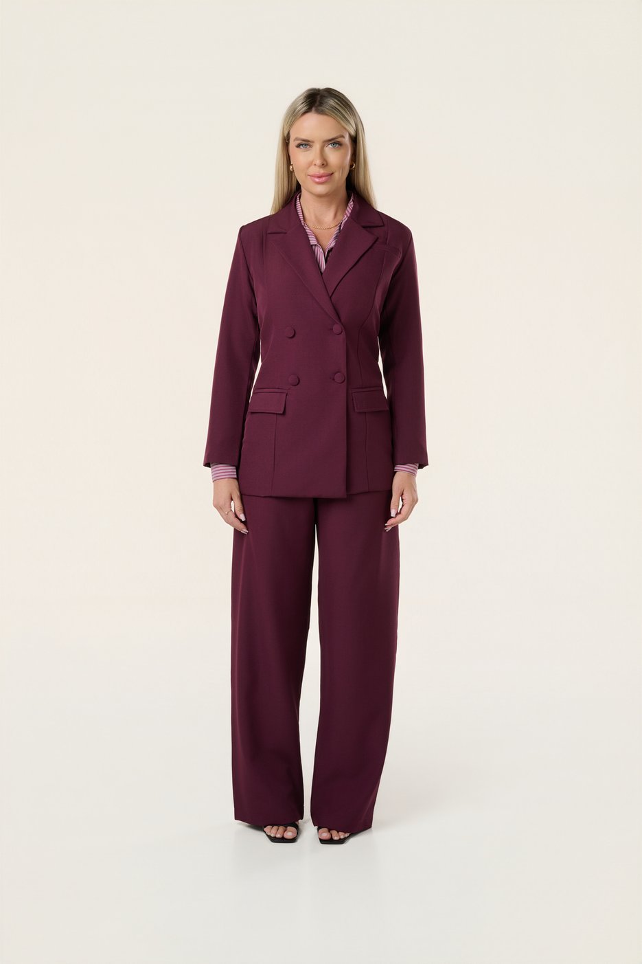 Blazer em alfaiataria,confeccionado em tecido plano de média gramatura, com excelente estrutura e caimento fluído.Modelagem levemente acinturada e corte transpassado que traduz presença e sofisticação na cor do inverno 2026, o Borgonha. Ele é perfeito para mulheres que desejam se destacar com elegância em qualquer ocasião.