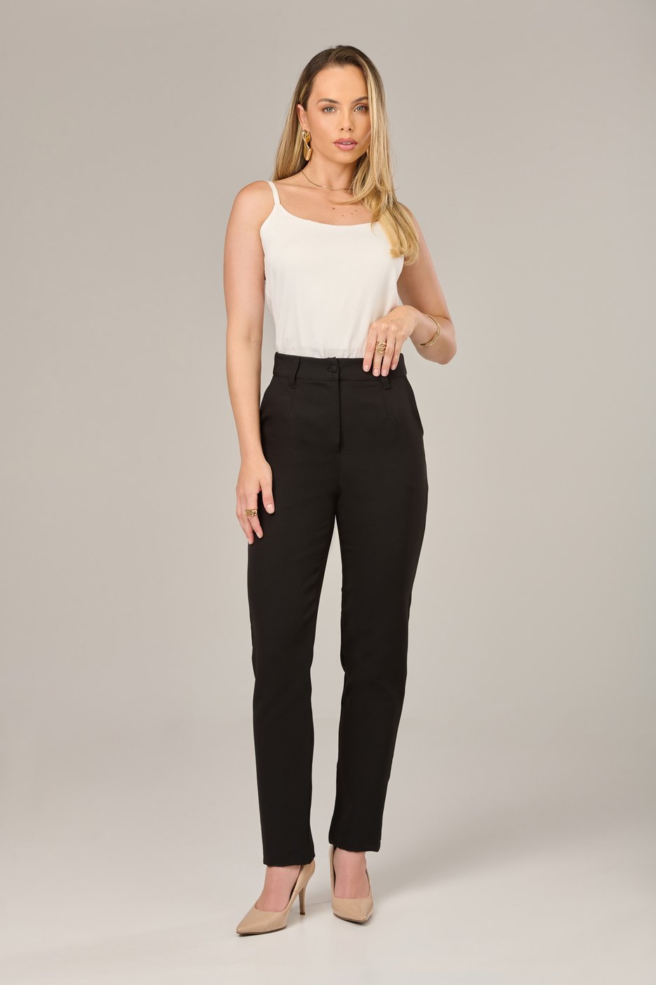 Com um caimento mais ajustado ao corpo, a Calça Reta é extremamente versátil e impecável em cada detalhe. Um clássico muito utilizado em ambientes formais e de trabalho, mas que também pode ser adaptada para looks mais casuais. Cós levemente curvado que abraça a cintura , bolso faca funcional da frente, sem bolso nas costas, botão encapado, uma peça atemporal, e importante de se ter no guarda – roupas.
