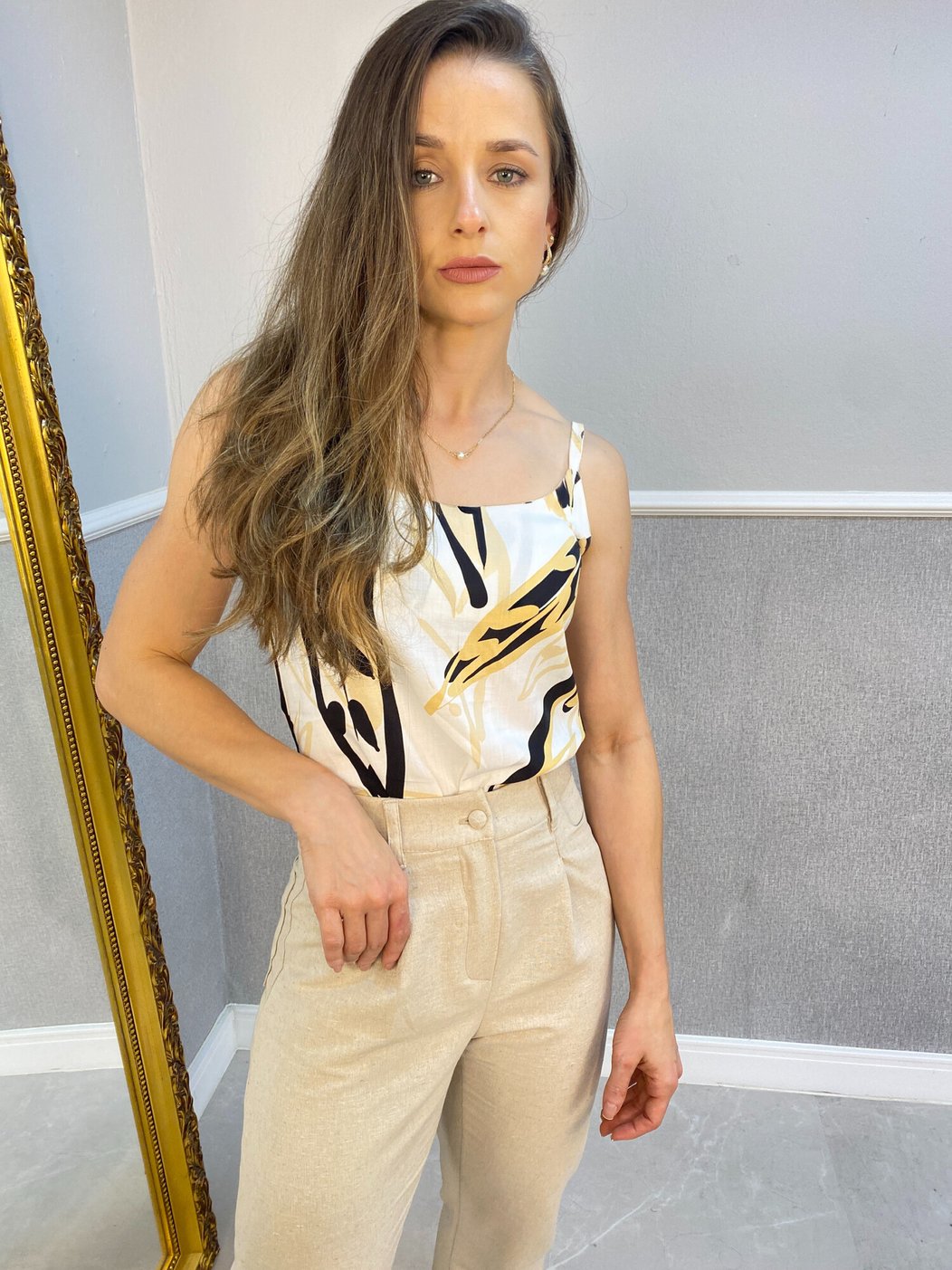 Adicione um toque de elegância e conforto ao seu guarda-roupa com nossa regata de alça de viscose. Perfeita para diversas ocasiões, esta peça básica é versátil e ideal para qualquer estação.Modelagem levemente solta permitindo mobilidade e conforto, possui forro na parte da frente, podendo ser usado bojo (o bojo não acompanha a peça). Alça mais fina para dar um toque delicado a regata, e estampa em tons mais leves para não marcar muito e cansar demais a peça. Podendo ser usada muitas vezes durante todo o ano. Sua combinação é perfeita tanto com alfaiataria como com jeans, calça, saia ou bermuda.  A viscose é um tecido leve e respirável, ideal para manter o frescor durante o uso. O decote mais aberto deixa o colo mais exposto permitindo o uso de colares para realçar ainda mais essa região.
